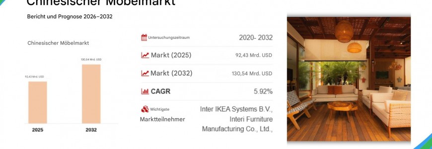 Prognose für den chinesischen Möbelmarkt: Der Umsatz wird bis 2032 voraussichtlich 130,54 Milliarden US-Dollar erreichen (jährliches Wachstum: 5,92 %).