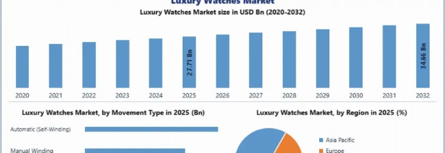 The global Luxury Watches Market was valued at approximately USD 27.71 billion in 2025 and is projected to reach around USD 34.66 billion by 2032, growing at a CAGR of 3.25% during the forecast period.