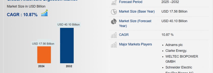 The global anaerobic digestion market was valued at USD 17.56 billion in 2024 and is expected to reach USD 40.10 billion by 2032. During the forecast period of 2025 to 2032 the market is likely to grow at a CAGR of 10.87%