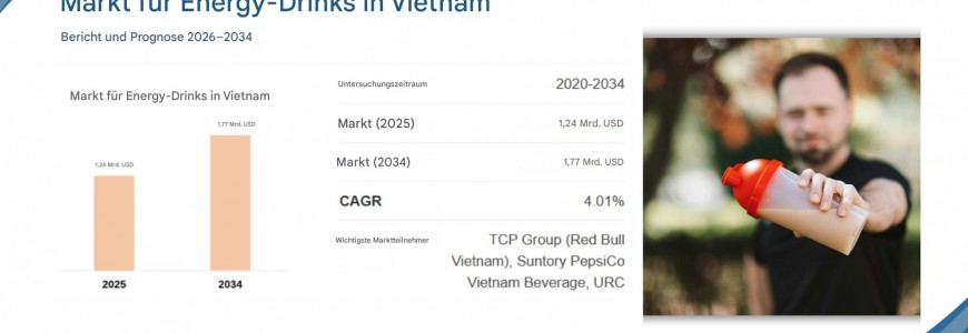 Laut dem Marktforschungsbericht „Vietnam Energy Drink Market Research Report (2026–2034)“ von Report Cube wurde der Markt im Jahr 2025 auf rund 1,24 Milliarden US-Dollar geschätzt . Basierend auf der aktuellen Branchenstruktur und den beobachteten Nachfragemustern wird prognostiziert, dass der Markt bis 2034 auf 1,77 Milliarden US-Dollar anwachsen wird , was einem durchschnittlichen jährlichen Wachstum von 4,01 % im Prognosezeitraum entspricht.